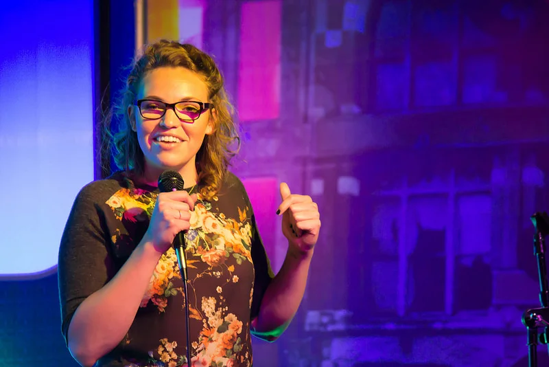 Daniel Webb is part musician, part comedian, and completely hilarious. He was encouraged to start stand-up about a year ago by the aforementioned Hardesty. His set was a non-stop, adrenalized train that didn't give you a chance to memorize any of the bits to regurgitate later. Erin Foley took the stage as about half a dozen people decided it was the perfect chance to take a restroom break. She chided them for "leaving" during her set with tongue firmly planted in cheek. Erin opened for Maria Bamford at the Paramount and was kind enough be a guest on our podcast. Speaking of podcasts, you can download and listen to Erin on the Sports Without Balls podcast.